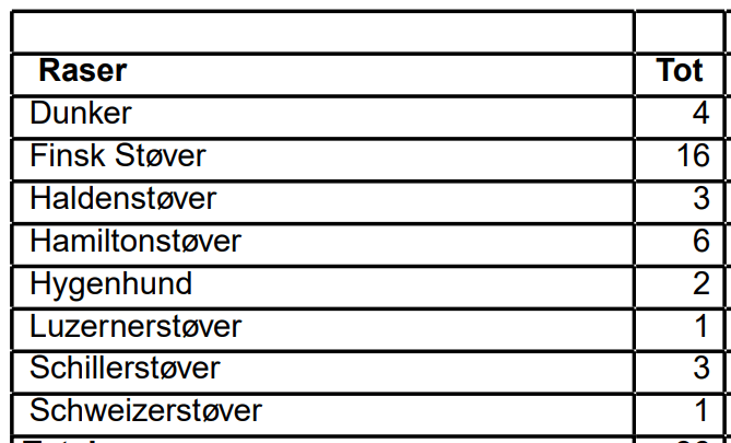 Totalt 81 hunder er påmeldt til utstillingen og fordeler som følger: