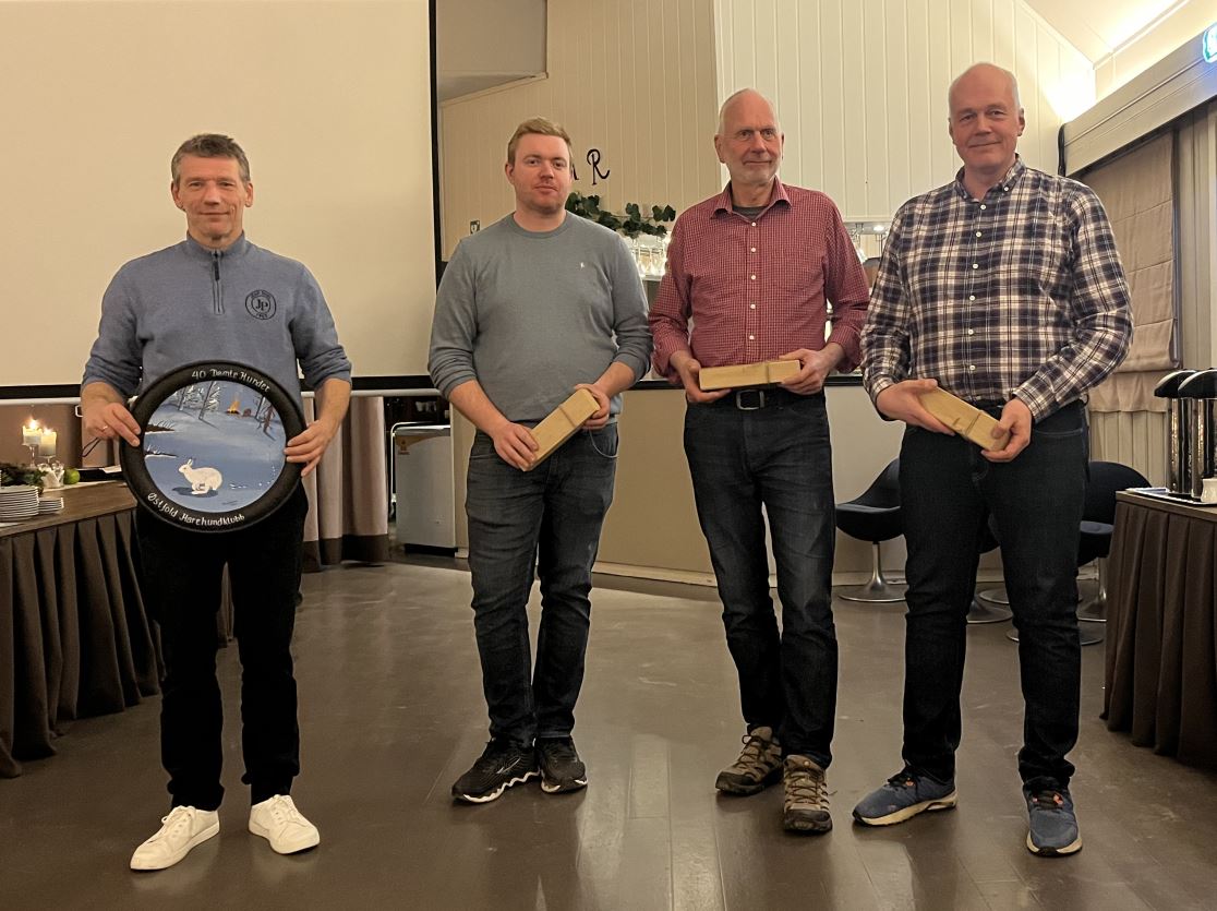 Fredrik Lund, Willy Jensen, Sigbjørn Berg og Bjørn Halvorsen (ikke tilstede) 20 dømte hunder – Kniv