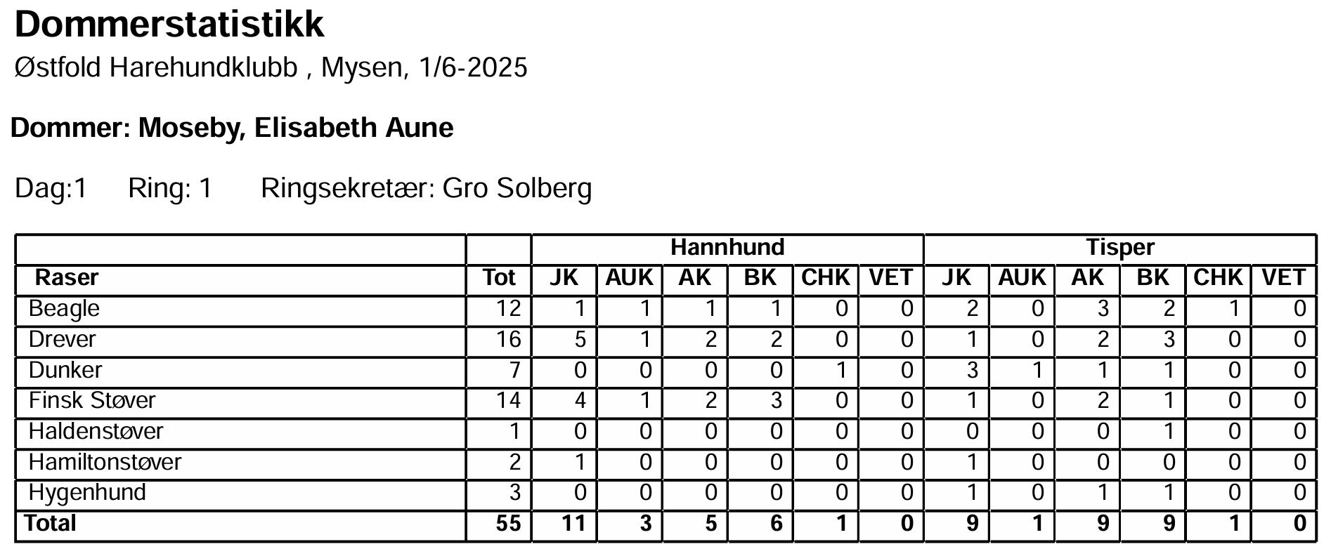 Totalt 55 hunder påmeldt til utstilling søndag 1.06.2025