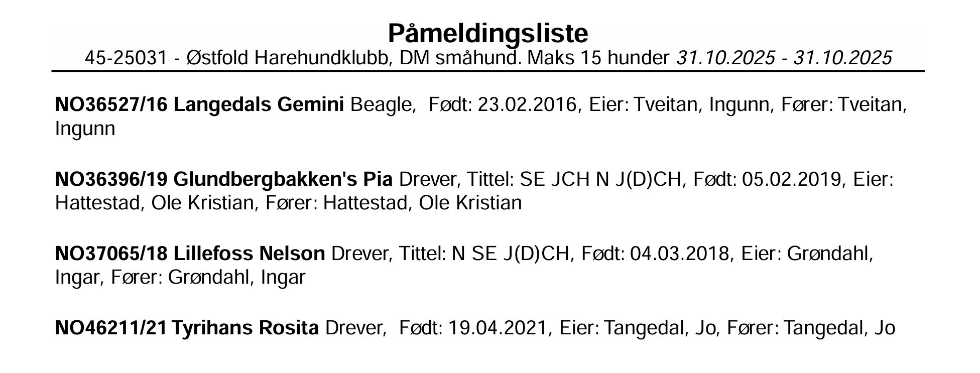 Kun fire hunder er påmeldt til DM småhund for distrikt 5 fredag 31.oktober, 1 beagle og 3 drevere. Mest sannsynlig kommer vi til å kjøre dreiebok på FB. Vi ønsker ekvipasjene lykke til!