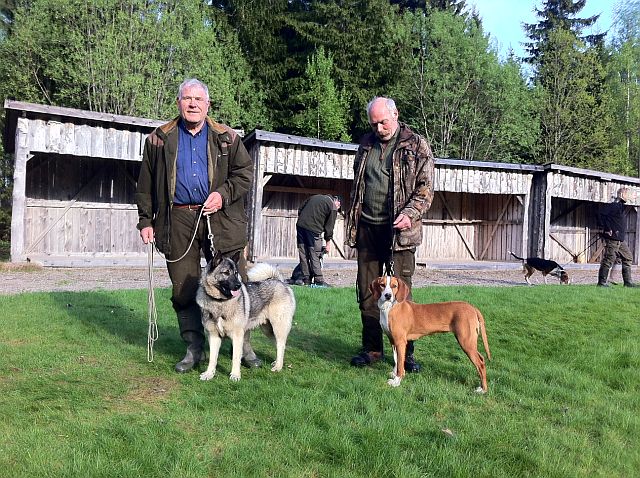 Tron med Norsk Grå elghund og Knut Jørgen med Hygen